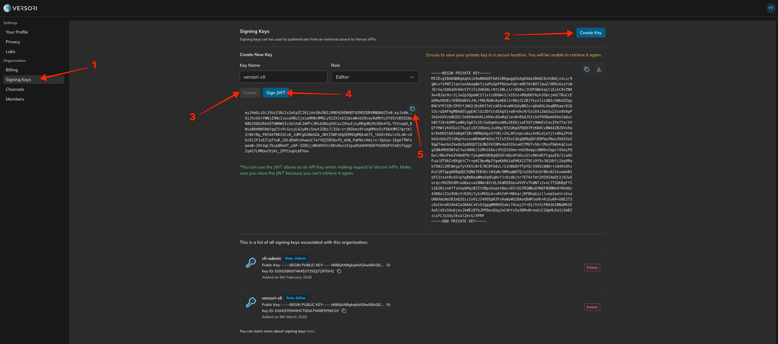 Generate a JWT token from the Versori console for the organisation you want to manage.